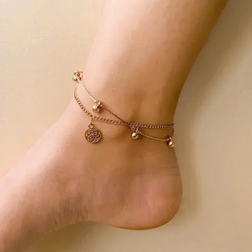 Double Chain Heart Anklet Gold Tone